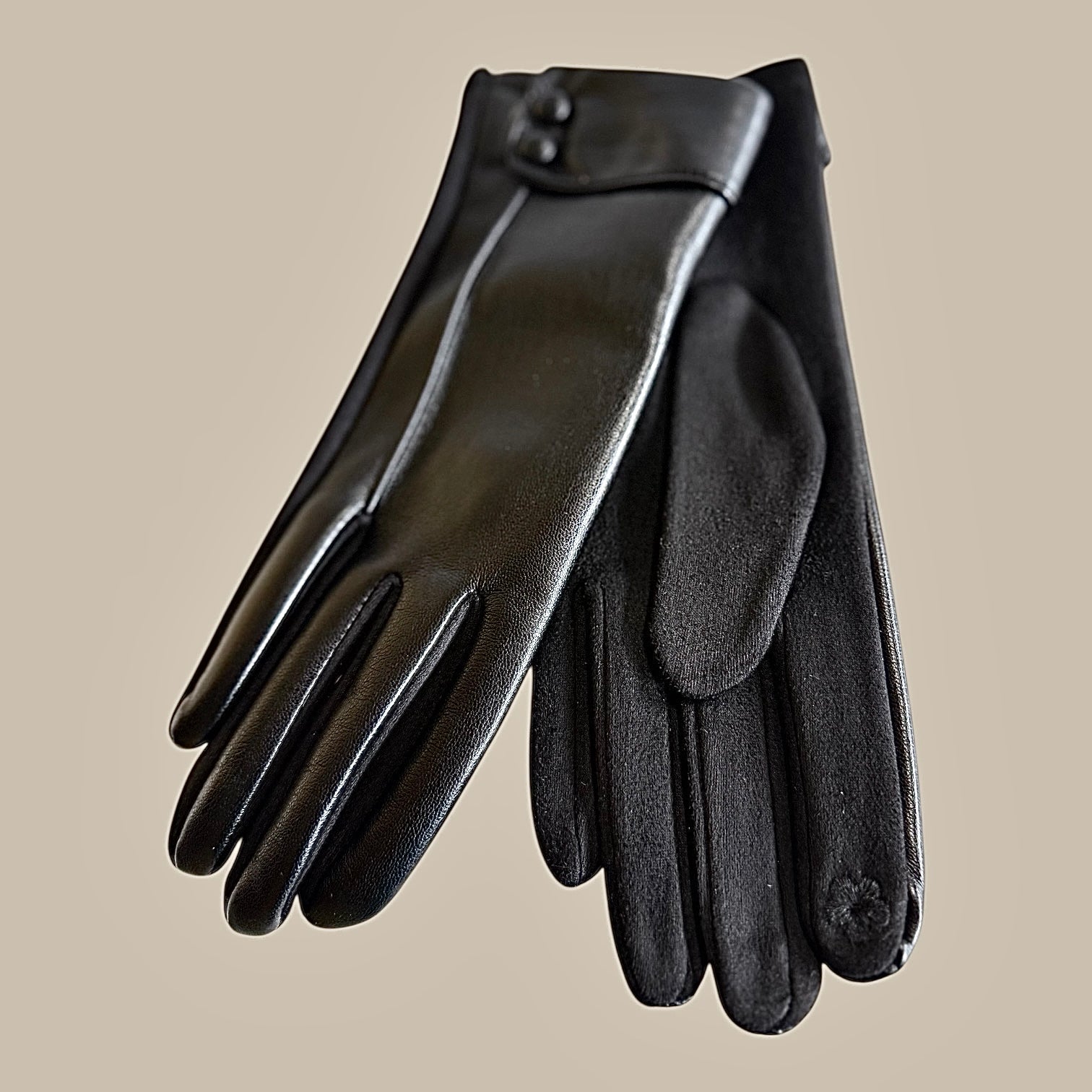 These are a classic good looking women's winter glove. They have a soft warm lining and fit very well. They are comfortable and warm. A great driving glove. The front side is a faux leather look and the other a soft warm fabric.
