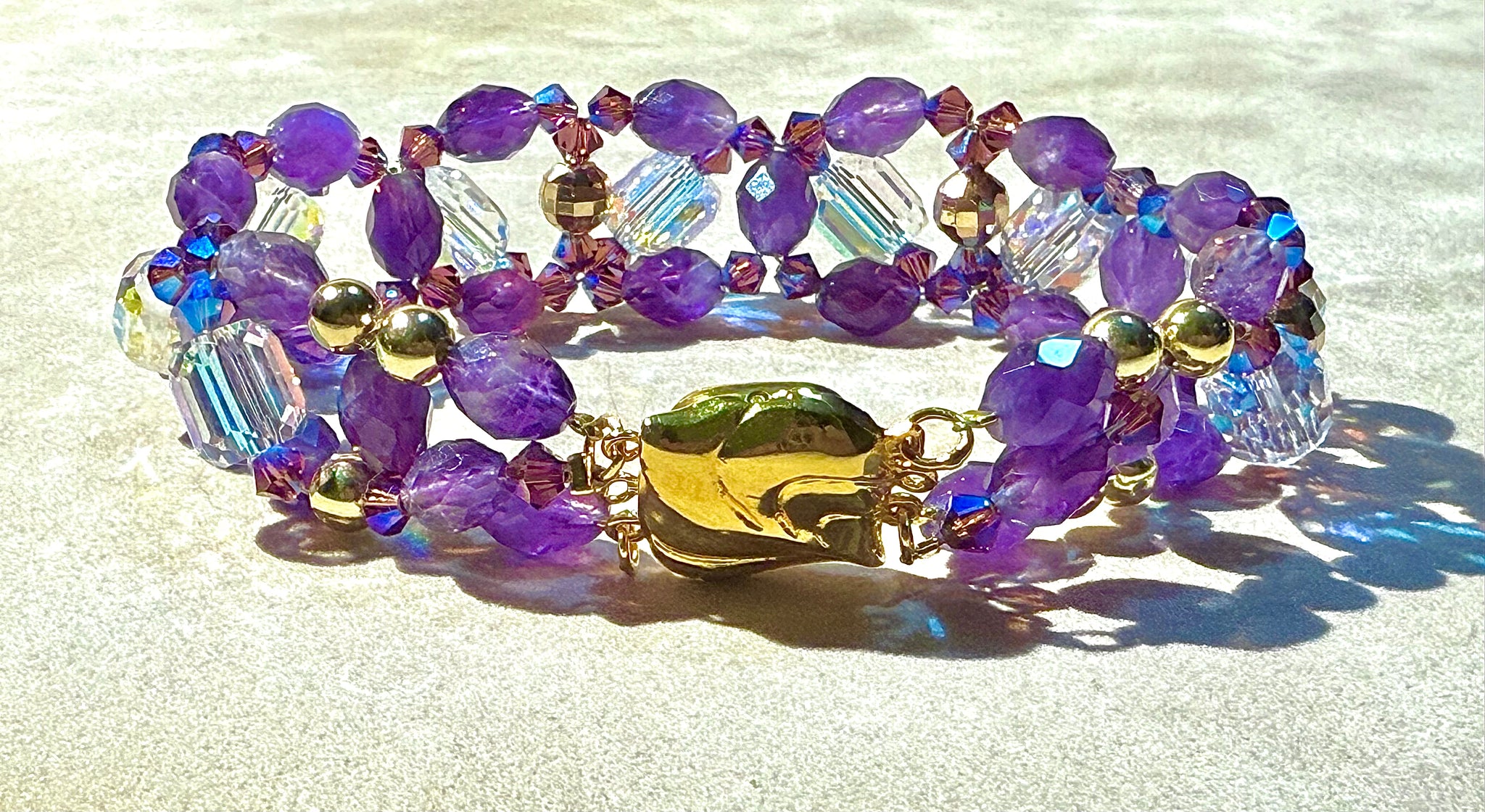 Amethyst Gemstone and Austrian Crystal Beaded Bracelet