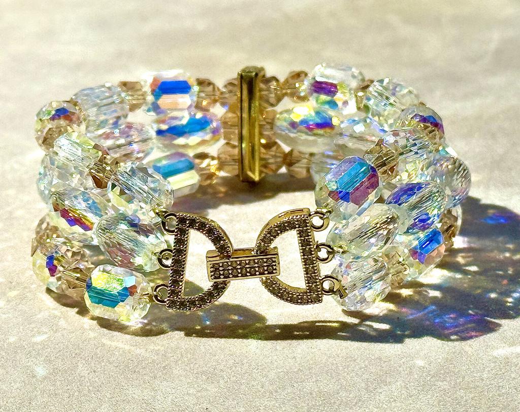 Gemstone: varies shapes of Austrian crystal woven together with a crystal gold clasp.