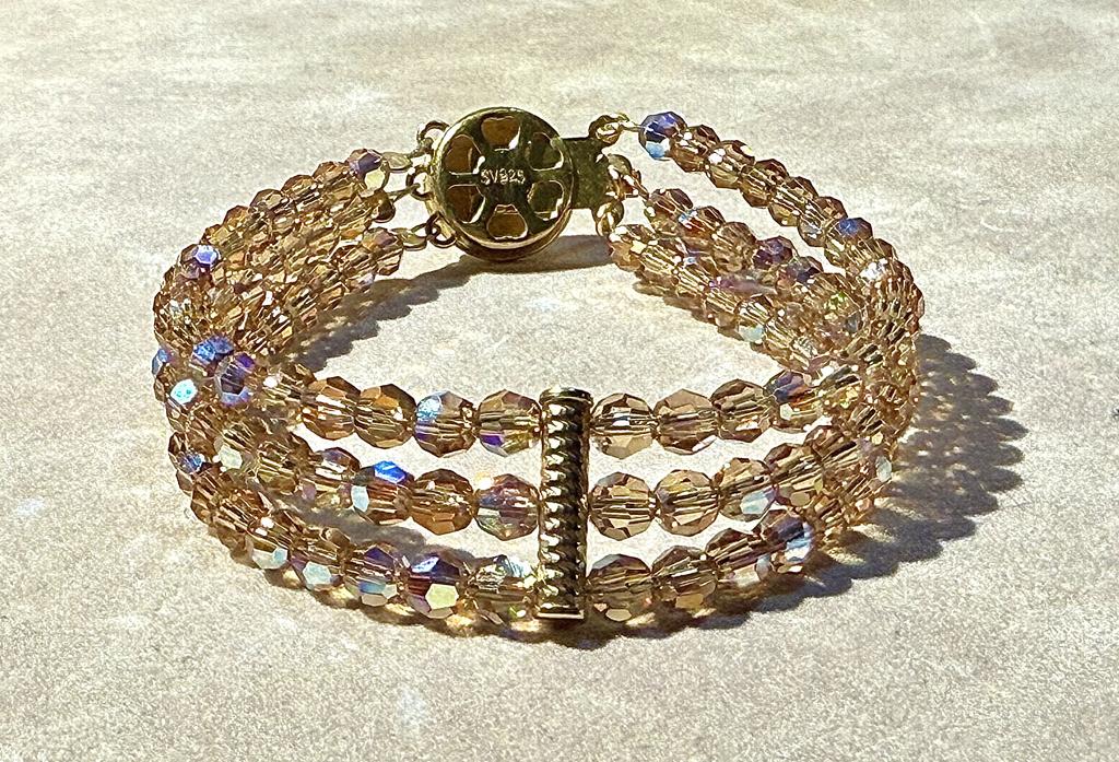 Golden Austrian Crystal Multi Strand Beaded Bracelet