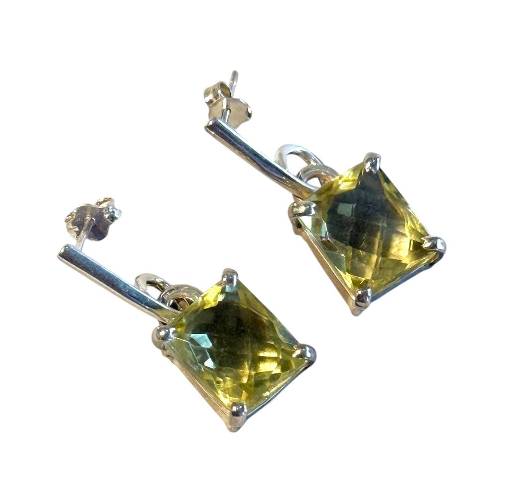 These are a stud style drop earring in sterling silver with a beautiful princess cut gemstone. They are a simple  style and can be worn day or evening. The rich tone and sparkle of these modern earrings, will elevate any fashion look