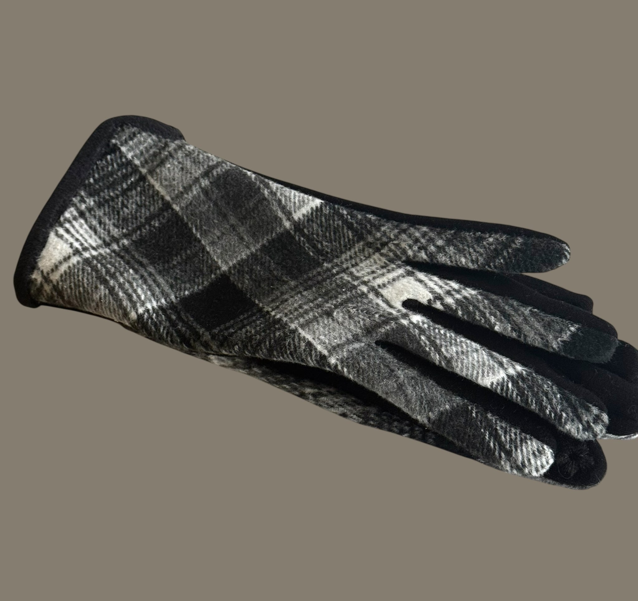 These are a classic plaid print glove. They have a warm lining and will go beautifully with you black winter coat.