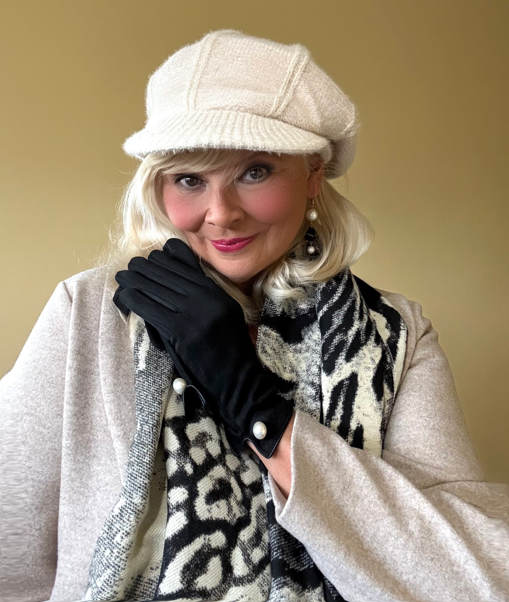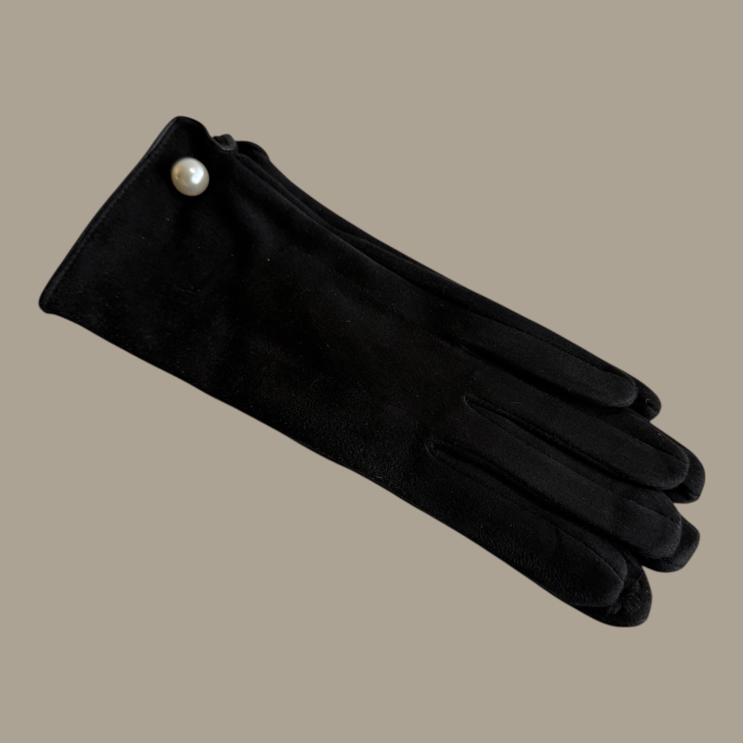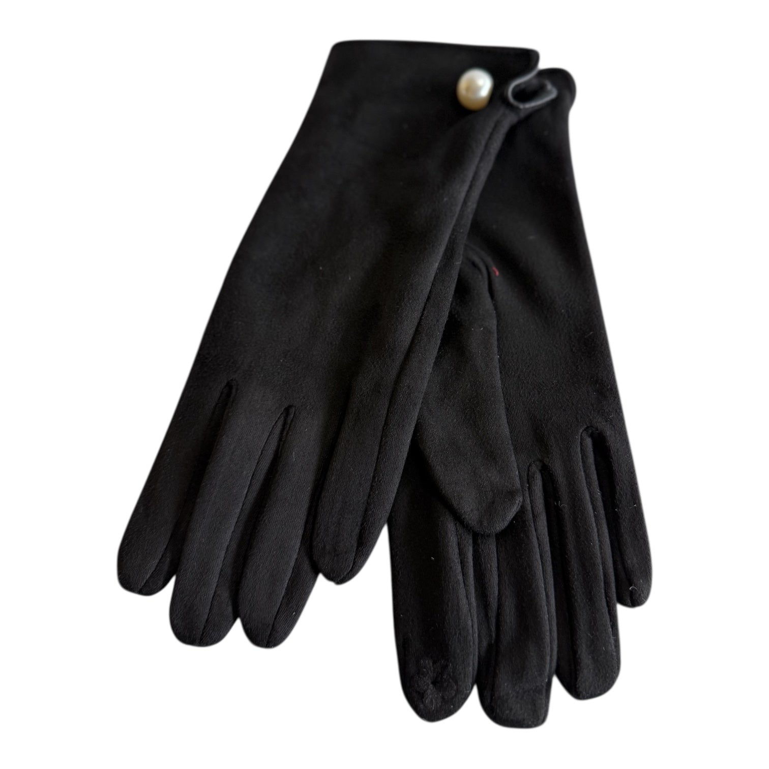 These are warm soft black winter gloves with white pearl button detail, Warm soft lining and is one of our best sellers. Stylist, affordable and super comfortable.
