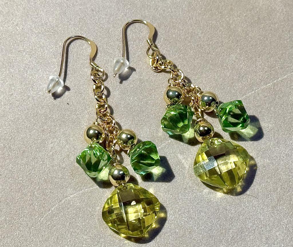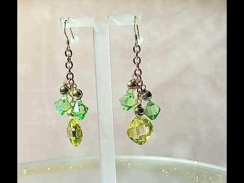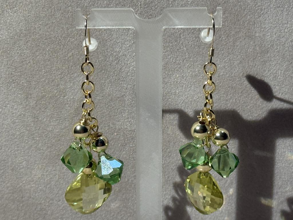 Gemstone: green and yellow shape Austrian crystal on a 14 K gold chain with 14 K gold hook