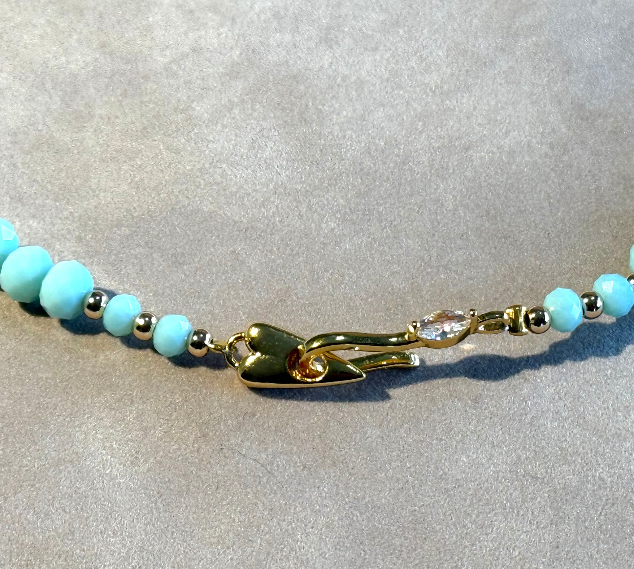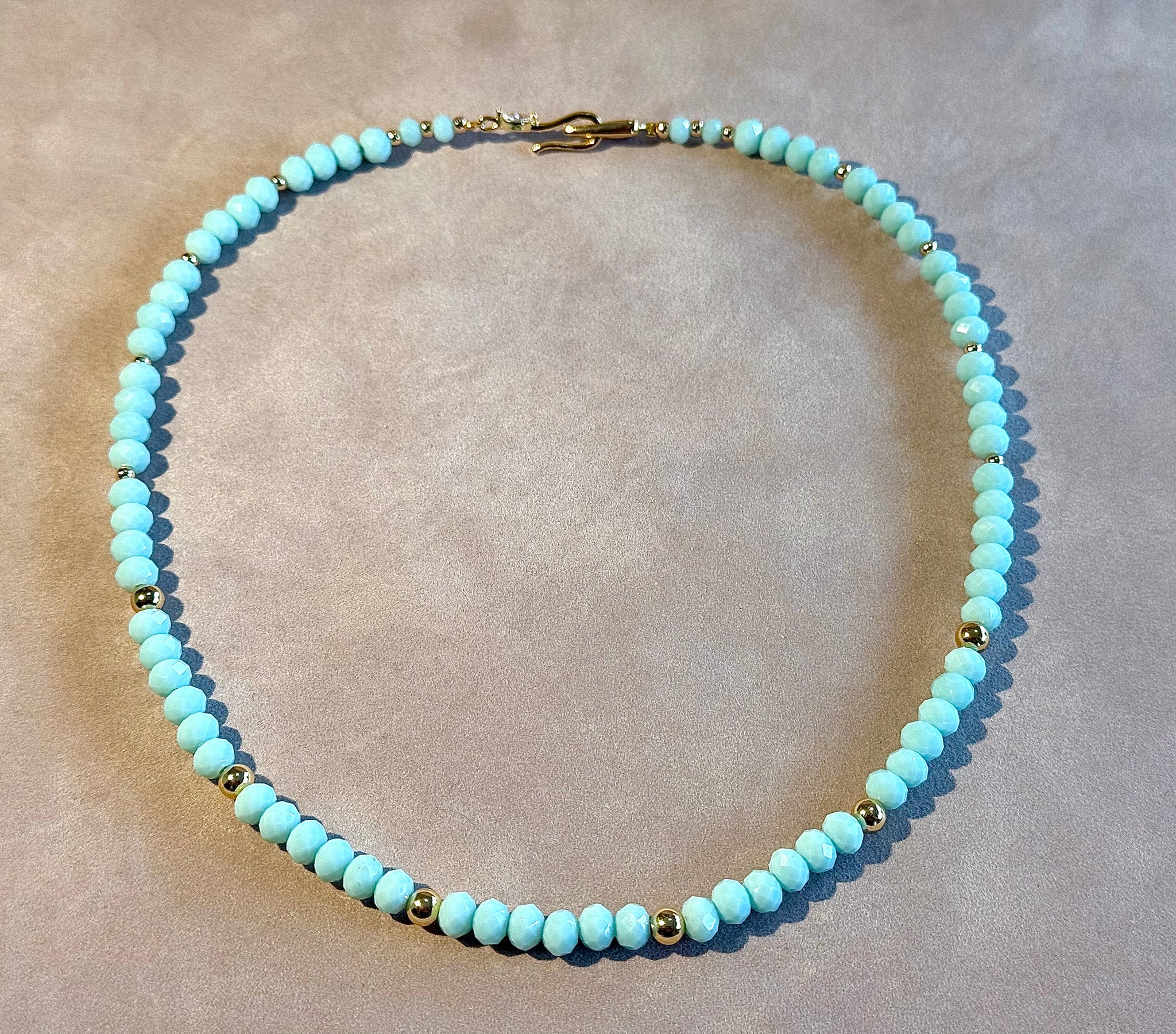 Gemstone: turquoise Austrian Crystal and 14 K gold filled beaded.