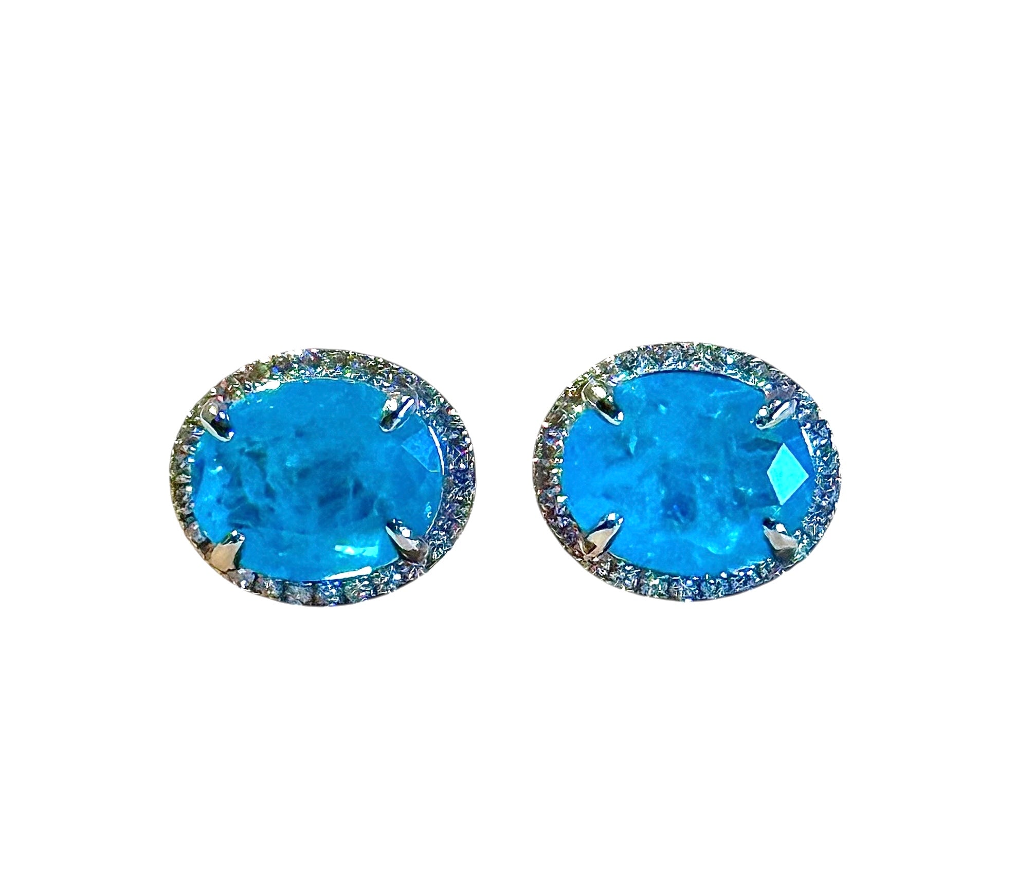These are a nice size stud earrings and sits well on the earring, very comfortable. They have an amazing pop of color. These Paraiba tourmaline gemstones are from Brazil and the neon blue is one of the most highly sought after colors in the Paraiba family.