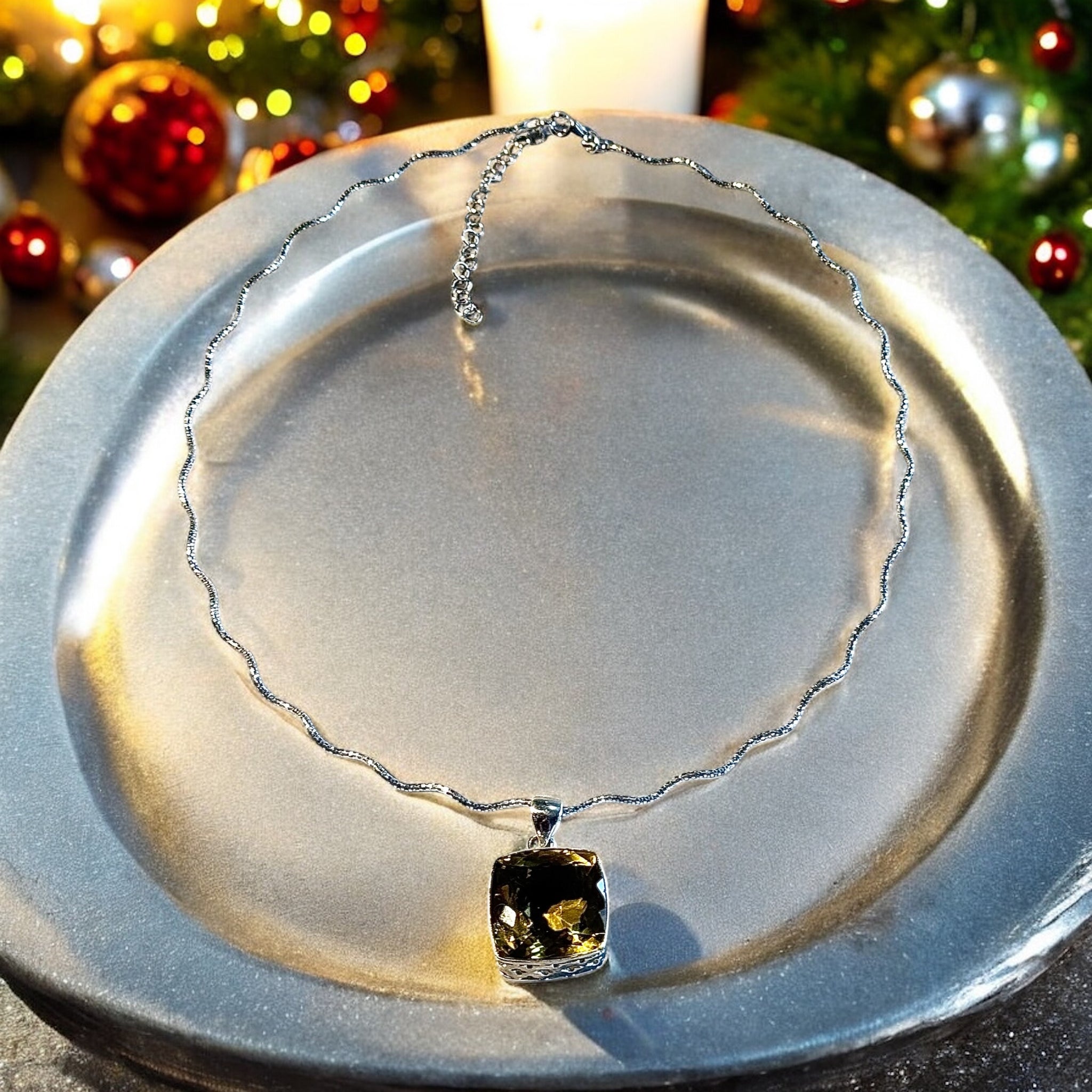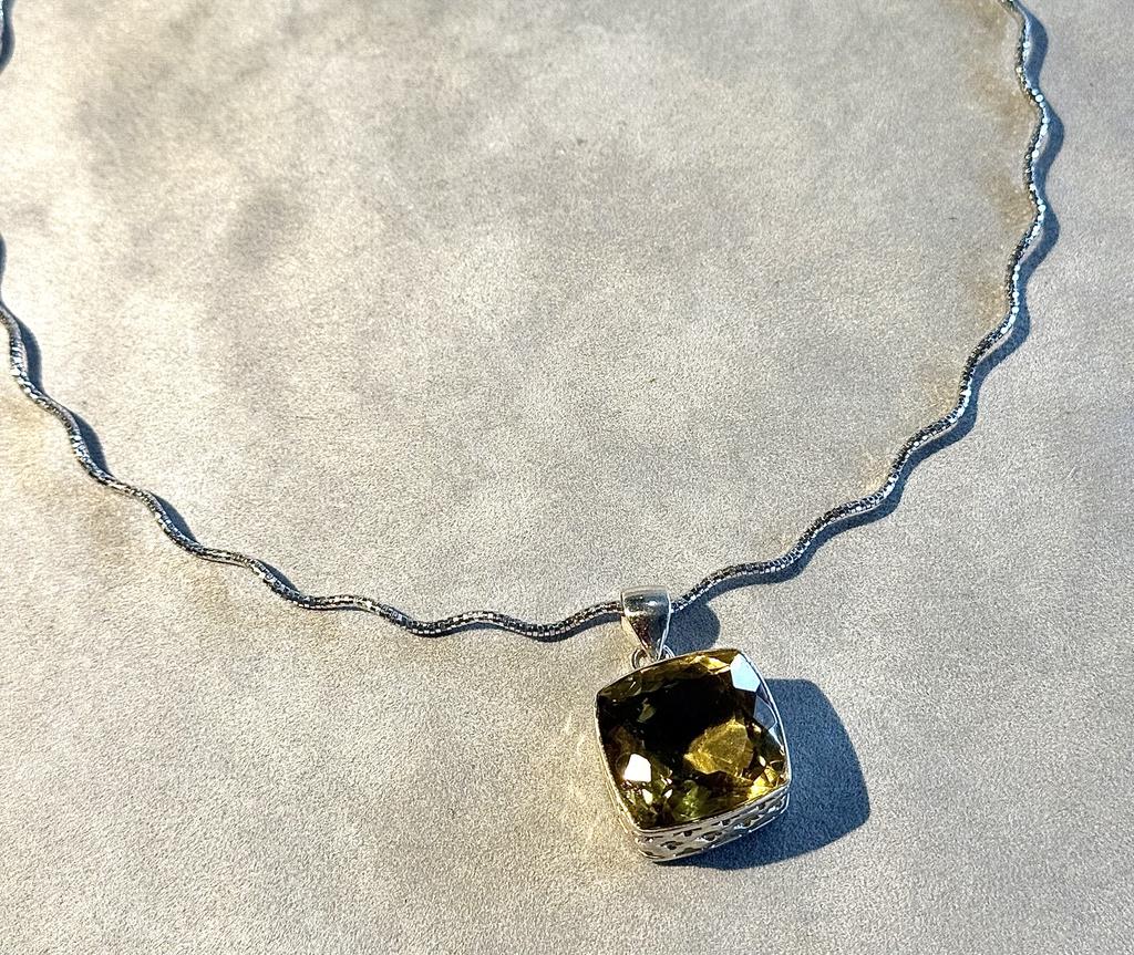 This is a beautiful lemon topaz gemstone necklace. The style is classic and simple, the sterling silver chain, is wavy and has a unique look. This is a necklace that is simply stunning wear day or evening, and enjoy the sparkle.