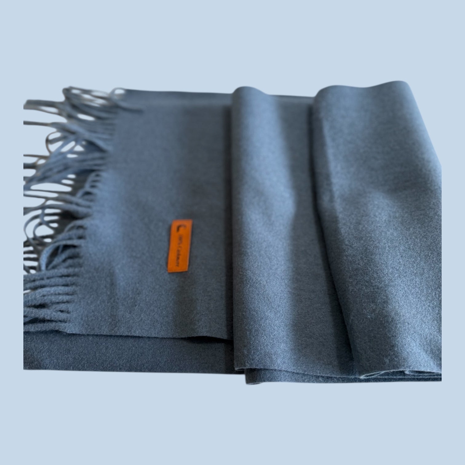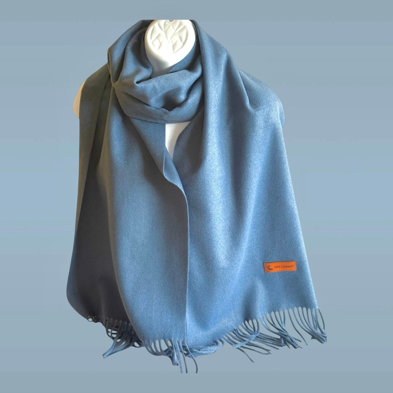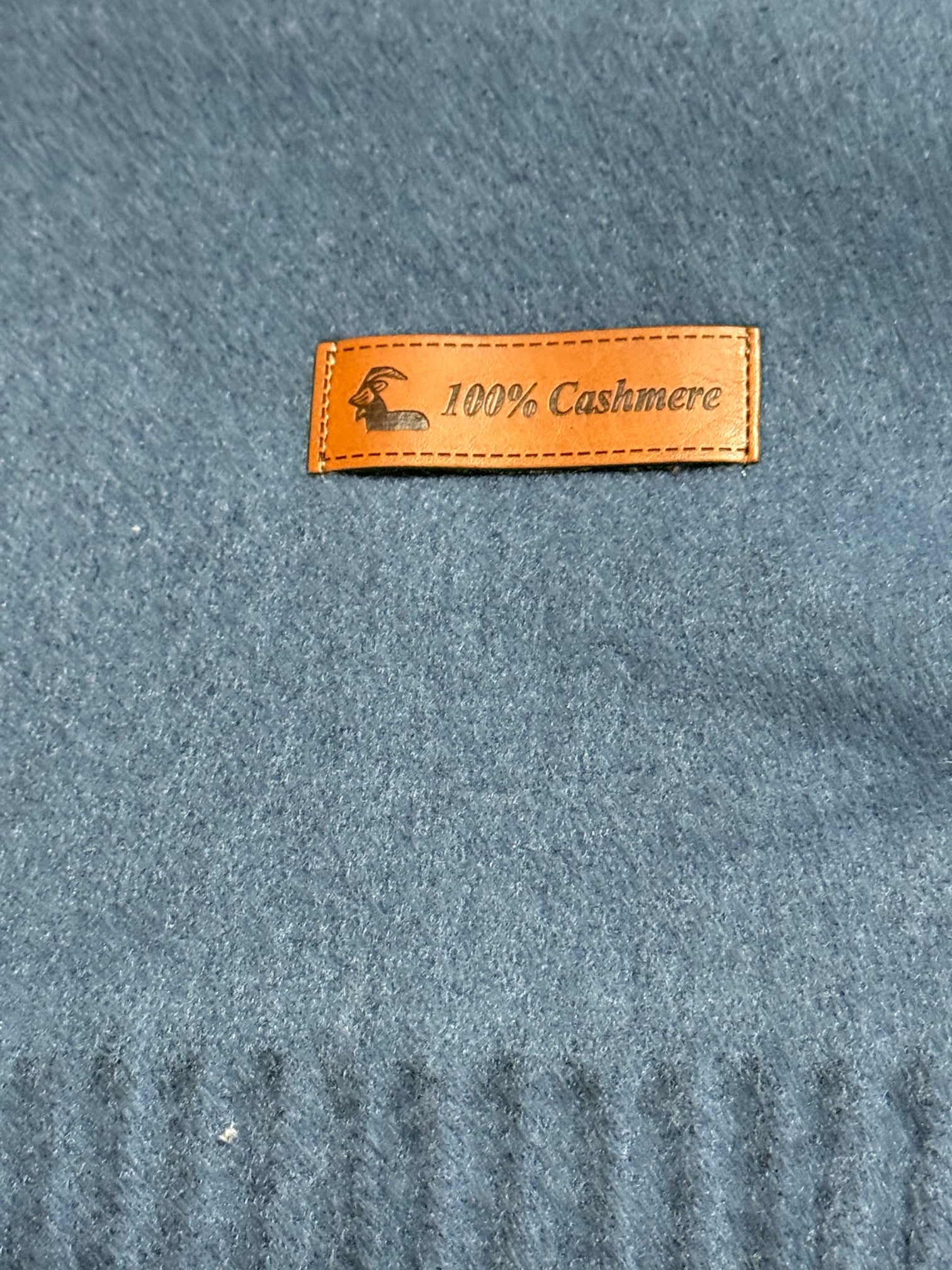This is a beautiful quality cashmere scarf for winter. So soft and easy to wear. It's not too thin or too thick, its a perfect weight to wrap around the necklace  of your coat or sweater and be cozy and warm. Its a true blue color and is a classic cashmere winter scarf