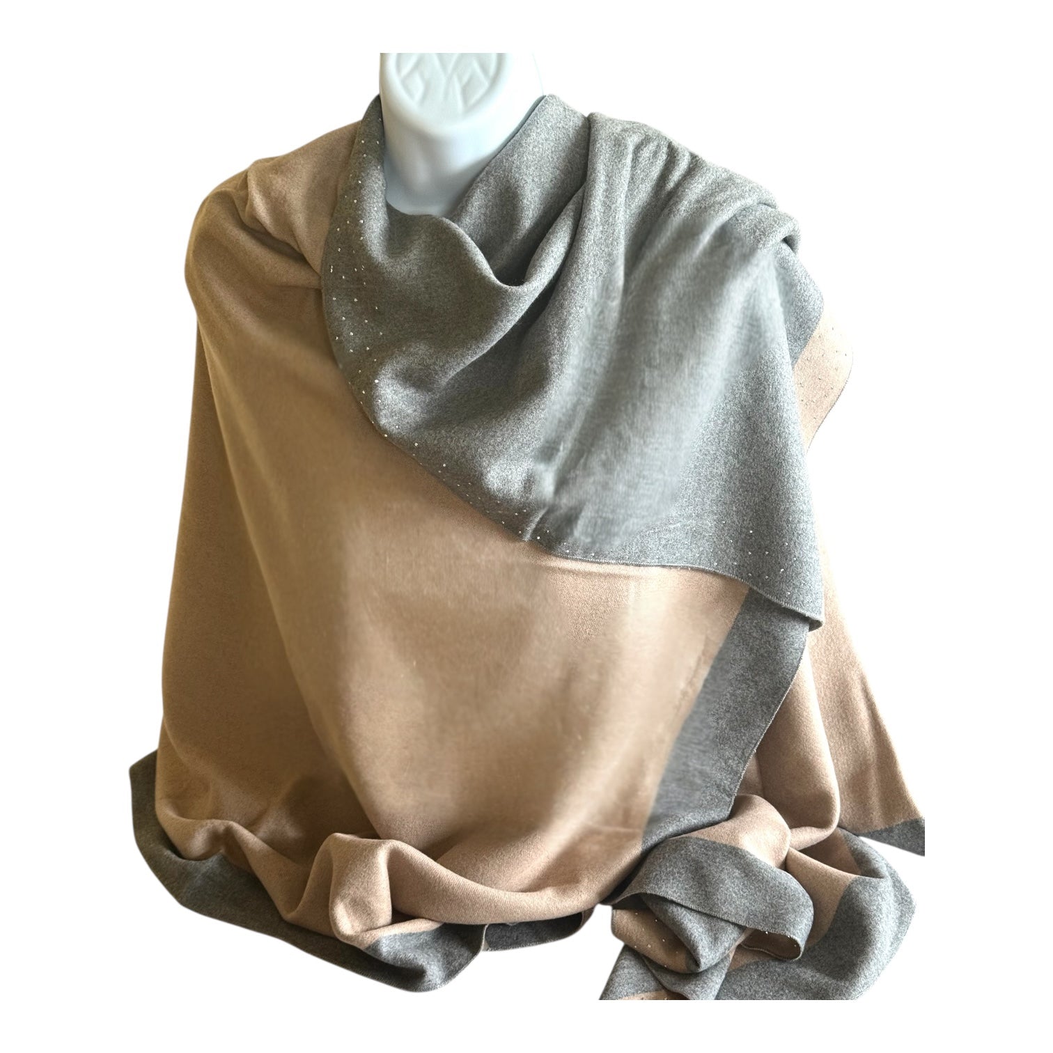 Light  Grey and Light Camel Revisable Cashmere Cape