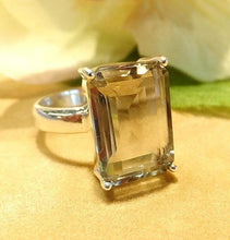 Material: This ring is made out of a princess cut green amethyst of about 20 karats. The gemstone is set into sterling silver. This green amethyst and sterling silver ring has a very soft shade of green with sparkle. This is a simple design that can be worn day or evening with many outfits because of its light color.