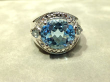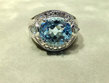 Blue topaz has become one of the most popular gemstones in the world. Its the Anniversary stone for the 4th and 19th year of marriage. The alluring color blue to this gemstones makes it the perfect gift for someone special. The size of this blue topaz ring is a vibrant blue and has loads of sparkle. This statement gemstone rings is a real treasure, for the womans who loves her sparkle.