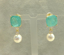 Mint Green Paraiba Tourmaline and Pearl Earrings