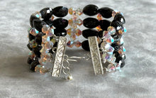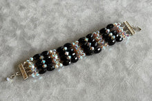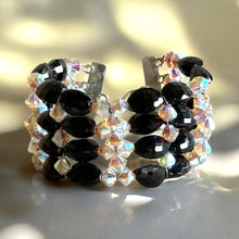 Gemstone: facet oval black onyx 15 CWT woven with Austrian crystals with a sterling silver clasp